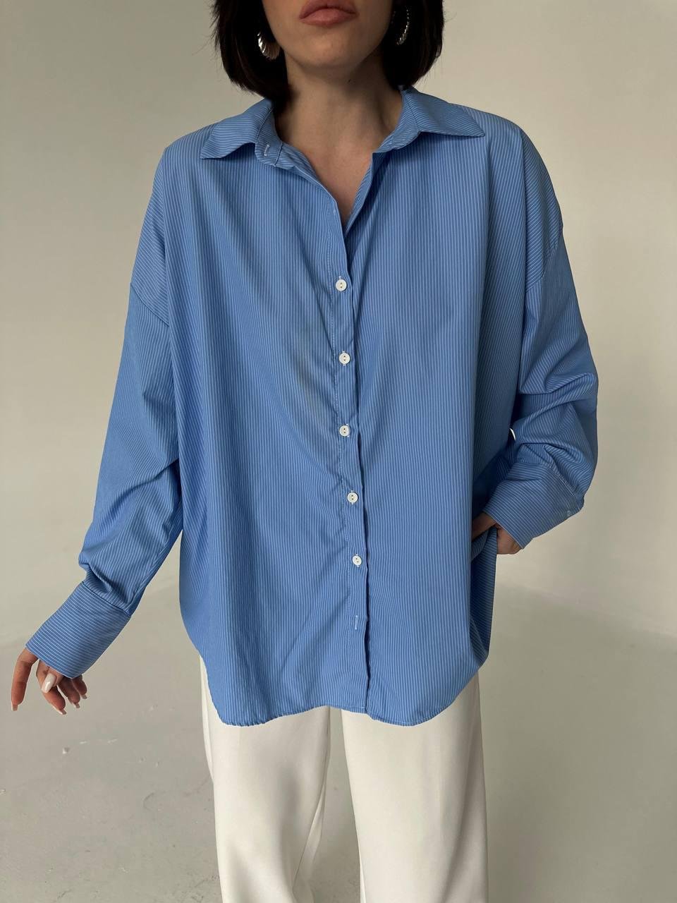 Une allure effortless et contemporaine : cette chemise oversize à rayures revisite un grand classique du vestiaire avec une coupe décontractée et des lignes nettes. À porter seule, en surchemise ou rentrée dans un pantalon taille haute pour un look affirmé.