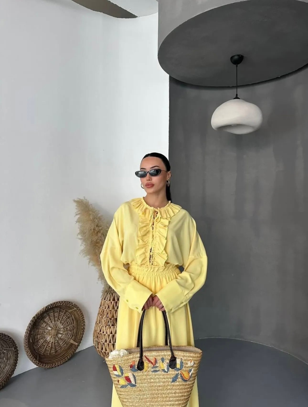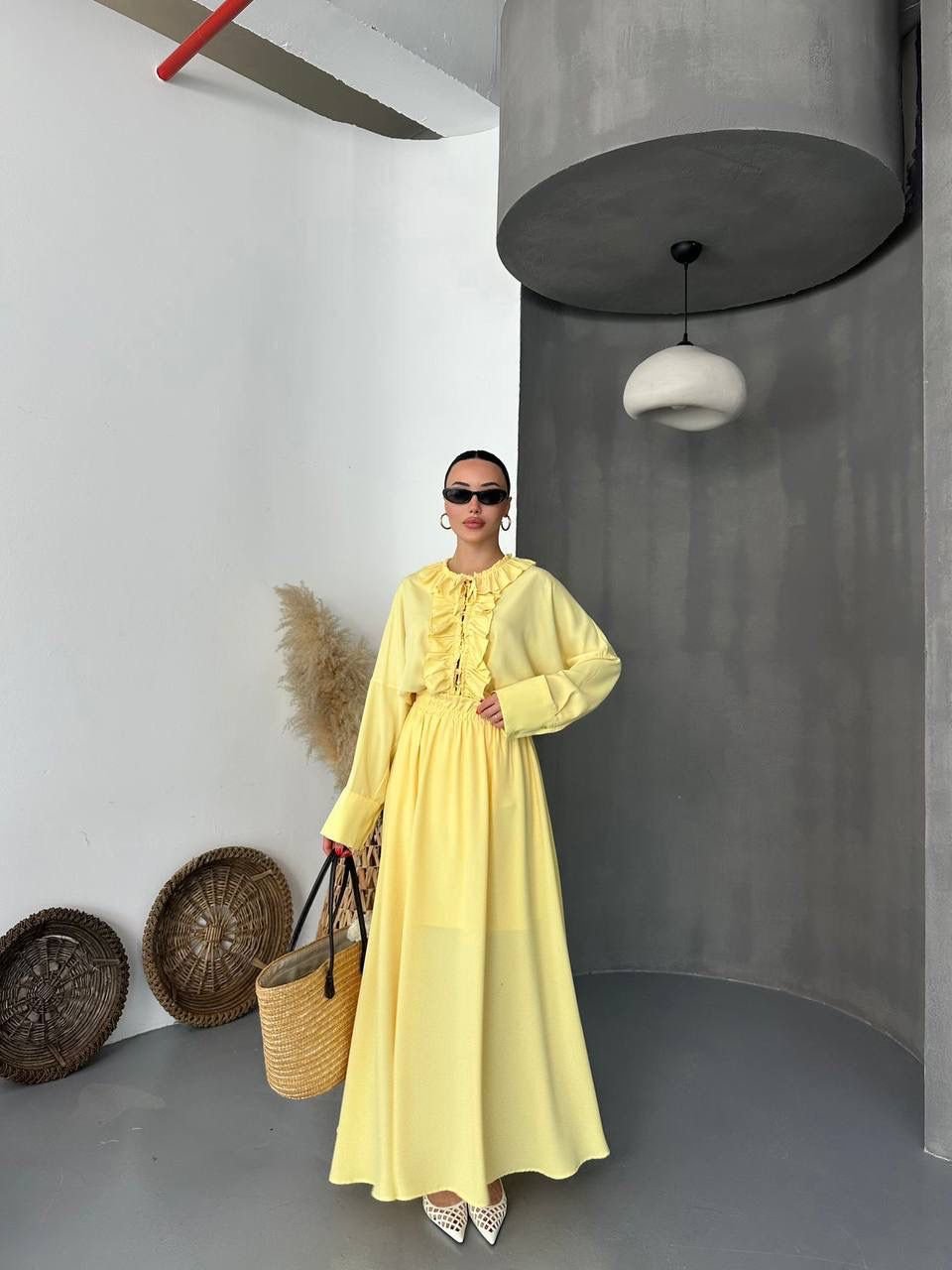 Ensemble chemise et jupe longue jaune beurre